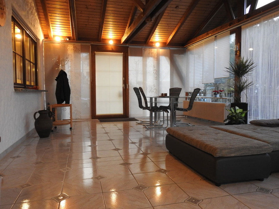 Gute Ausstattung, großer Wintergarten, WC mit begehbarer Dusche und Waschmaschine, eingerichtete Wohnküche.