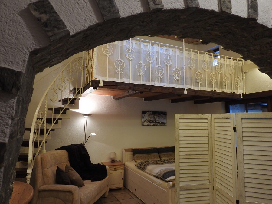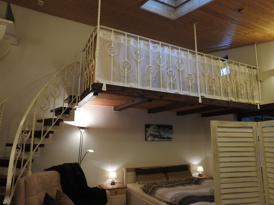 Schlafzimmer mit Doppelbett 180x200, auf der Galerie ein Bett mit 100x200
