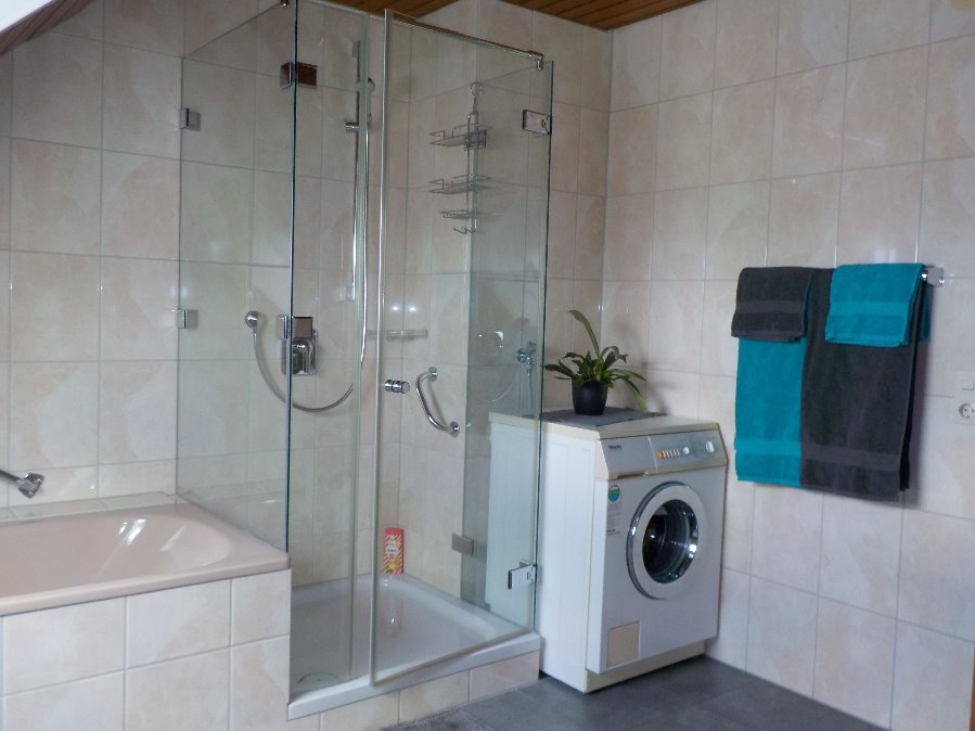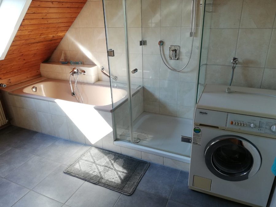 Im Badezimmer erwartet Sie eine Dusche sowie eine Badewanne, Waschbecken, WC. Eine Waschmaschine steht zur Verfügung .