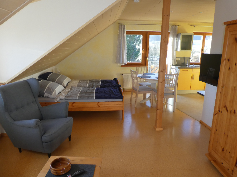 - Einzimmerapartment mit kleiner Küche (incl. Spülmaschine, Cerankochfeld, Wasserkocher, Filterkaffeemaschine, Backofen und Toaster)