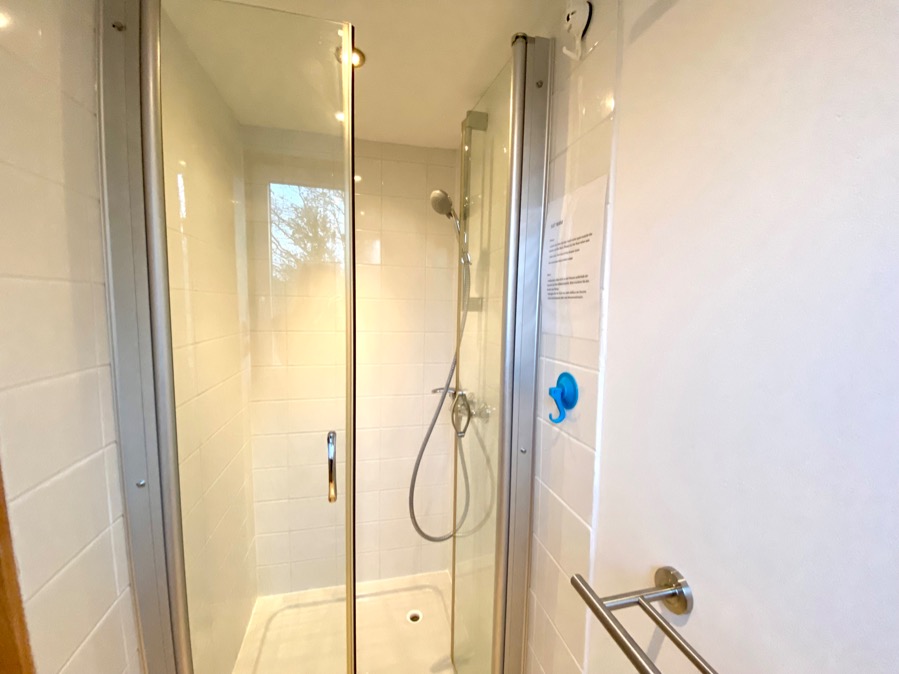 Etagen-Badezimmer mit Dusche & Badewanne, Etagen-WC separat (jeweils exklusiv für das Einzelzimmer).