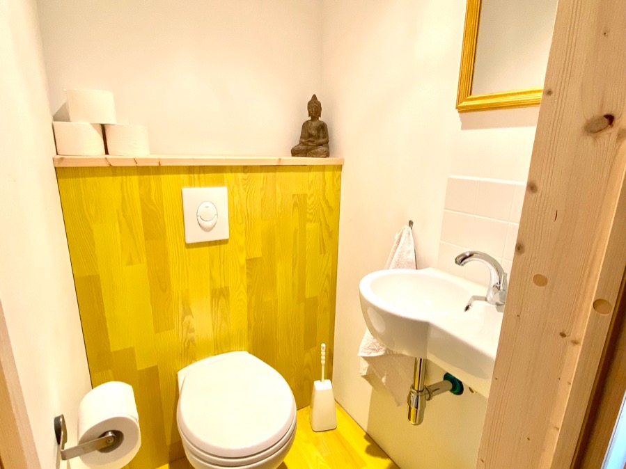 Unsere Räumlichkeiten liegen im neu ausgebauten Dachgeschoss und im Erdgeschoss unseres ehemaligen Bauernhauses und verfügen jeweils über einen separaten Eingang. Sie sind mit Liebe eingerichtet, schlicht und gepflegt und strahlen Ruhe aus. Für Entspannungssuchende besteht die Möglichkeit an Yoga-Stunden teilzunehmen oder eine Einzelstunde zu buchen. Bitte beachten Sie, dass in den Küchen nur vegetarische oder vegane Speisen aufgewärmt werden können. Andere Speisen sowie kochen sind leider nicht möglich.